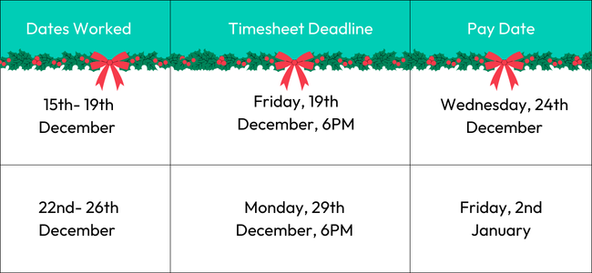 With the holiday season fast approaching, it’s time to make sure everything’s in place for a hassle-free end of term. Our Payroll team has put together all the key dates to ensure your payment arrives in time for the festivities.